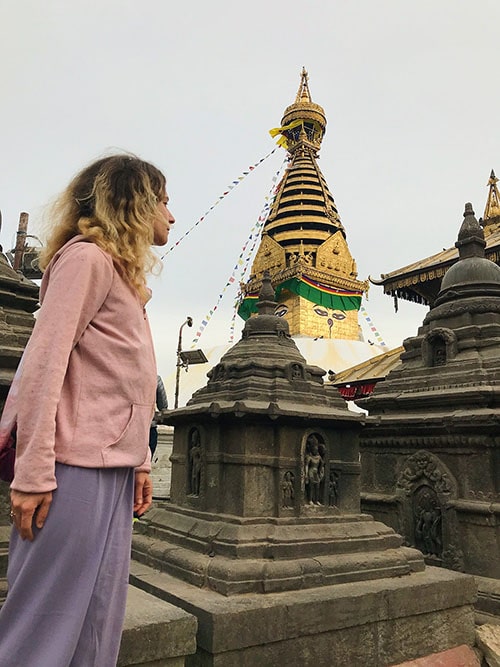 Вторым – посещение одного из самых святых мест города, ступа – Сваямбунатх. По приданию именно с неё начался Катманду и зародилась вся долина с поселением. И хоть закат увидеть нам не удалось, послевкусие от этого места осталось хорошее. А сколько там обезьян 🙅🏼